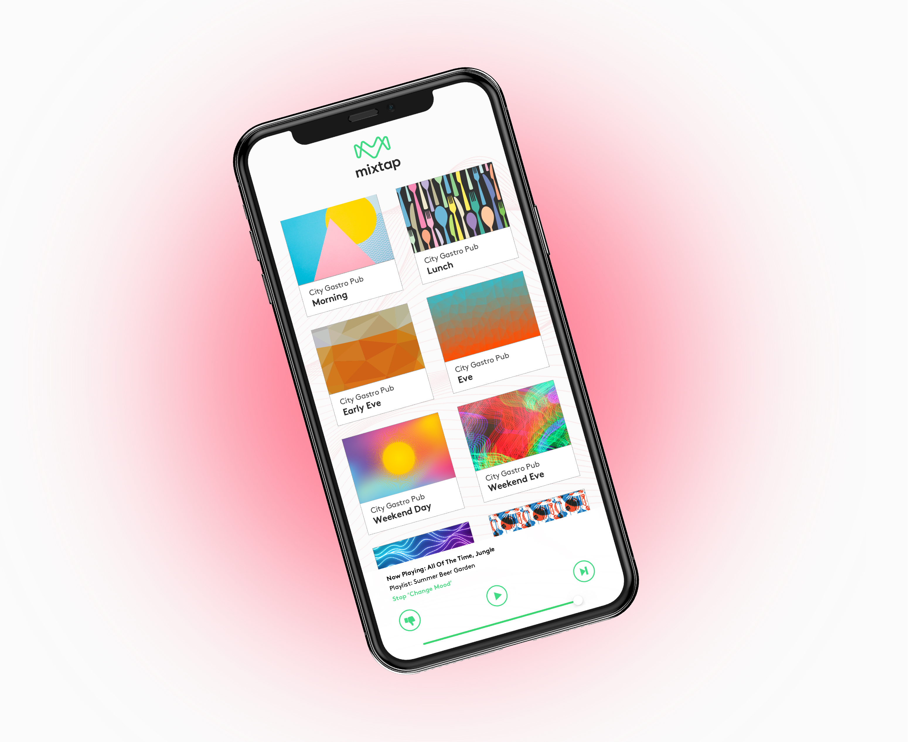 Your Mixtap player arrives preloaded with your curated, pub-ready music profile, tailored and auto-scheduled to match your trading flow from weekday lunches to busy Friday nights.